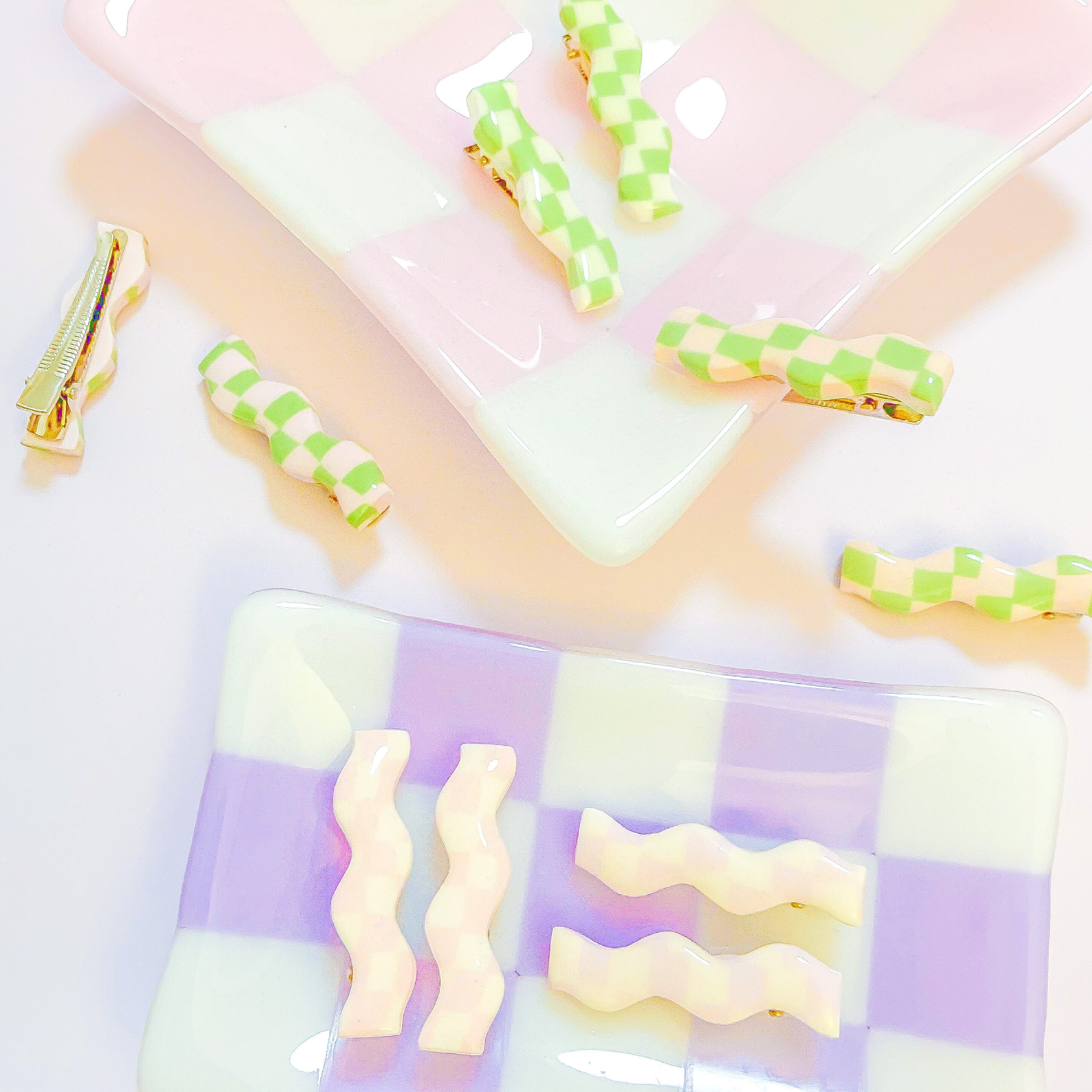 Wave checkered hair clip - × white